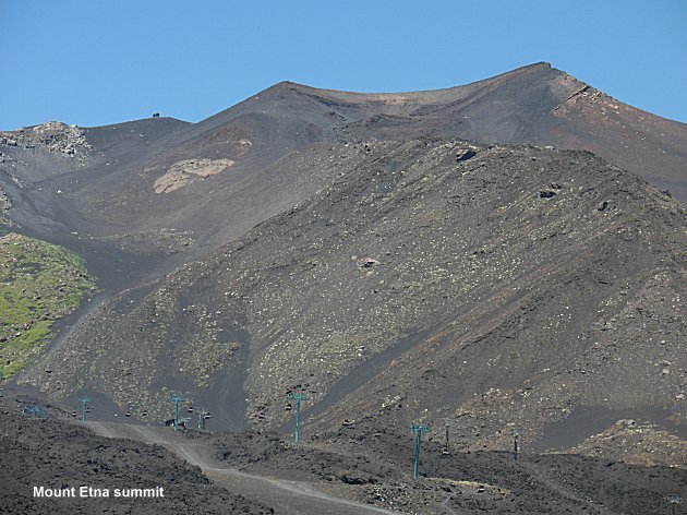 At Etna North there were lots of lava flows but here it was much more impressive with some big craters dating from a major eruption in 1983. A cable car was working that took you up about another 1000m, still 430m from the top and you are not allowed higher as explosions and molten rock are common past that point. Sue is frit of cable cars so we did not go further!