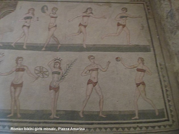 We checked out the next morning and headed for Palermo. On the way we made a detour to visit the Roman Villa at Piazza Amarina. The villa dates from about the end of the 3rd century AD is famous for its magnificent mosaics. The problem with photographing mosaics is that the photo never does the art justice as the mosaic should be wetted first to bring the colours out. It is a huge villa which took up at least an hour to walk around and virtually every floor is covered. One hallway must be about 50 or 60 metres long and the floor is a huge hunting scene capturing animals from Africa for 'yer Romains 'ter kill in their arenas.