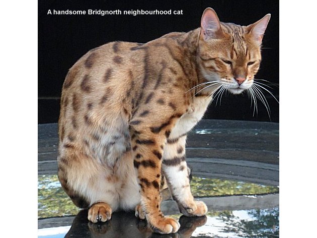 We are often visited by a magnificent cat with markings like a leopard and I managed to take some photographs of him on a recent visit.