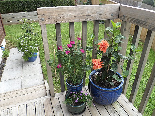 The photo below of Hibiscus D J O''Brien is one of the plants we bought from Growers Direct and are growing in pots around the place. I am learning by experience what grows best and where in this climate and Hibiscus seems to like it here. I do not know how long this warm weather will continue but the Hibiscus is only a few months old and is blooming with several buds.