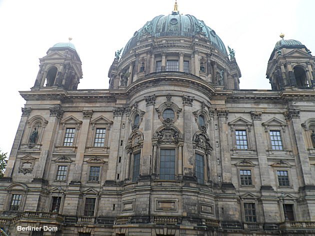 Continuing along the Karl-Liebknecht-Straße we came to the River Spree and the impressive Berliner Dom, the 19th century Cathedral Church of Berlin. On the opposite bank sitting on the wall admiring the view was a bunch of bronze nudes while underneath was the DDR museum where Sue bought her Trabant model car.